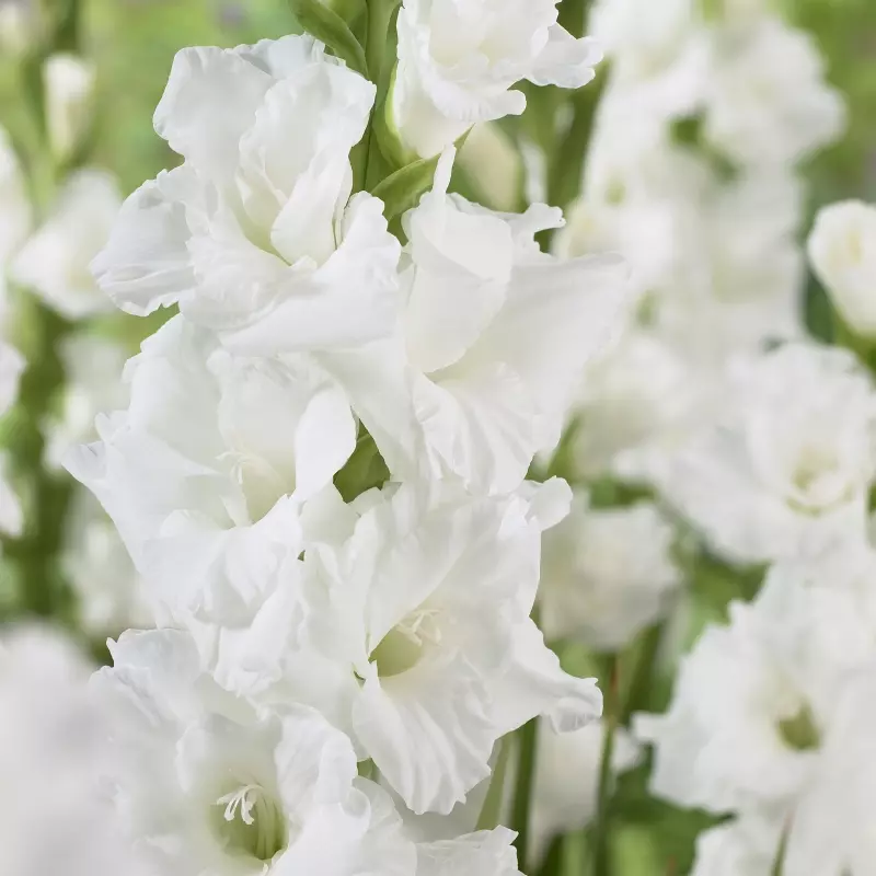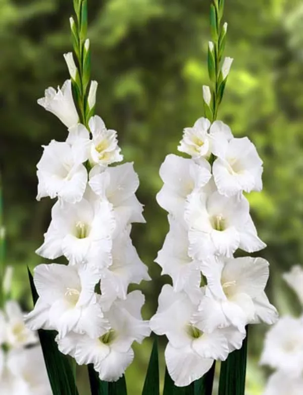 Opis: Gladiola z nežnimi belimi cvetovi.