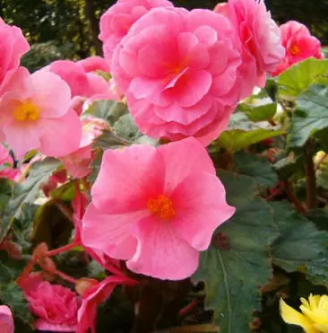 Opis: Begonija s polnimi rožnatimi cvetovi.
