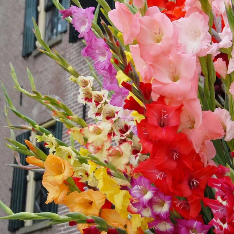 Opis: Mešanica velikocvetnih gladiol.