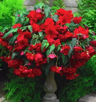 Opis: Povešava begonija z velikimi polnimi rdečimi cvetovi.