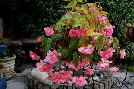 Opis: Povešava begonija z velikimi polnimi rožnatimi cvetovi.