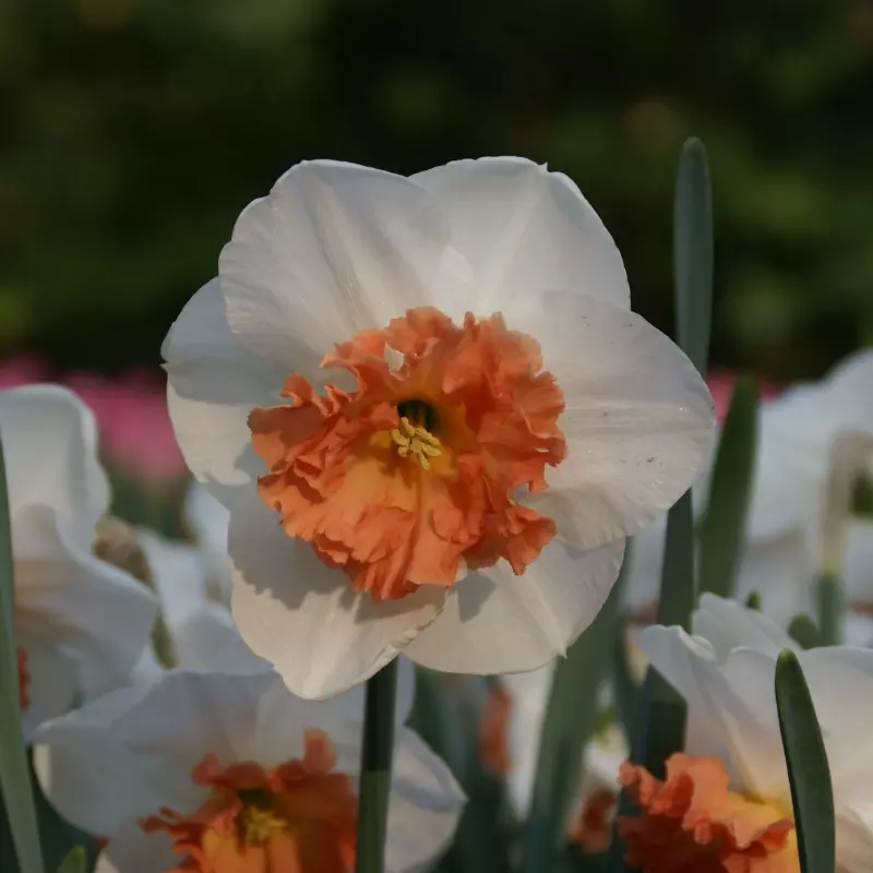 Opis: Narcisa z belimi cvetovi z nagubano marelično čašo.