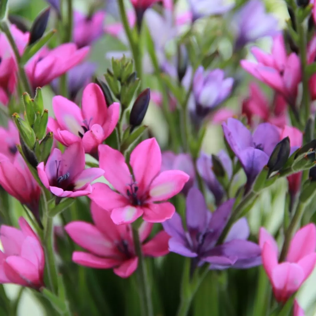 Opis: Pritlikava čebulnica s frezijam podobnimi cvetovi. Požene 7-10 cvetov na steblo. Mešanica cvetov v pretežno modrih tonih.