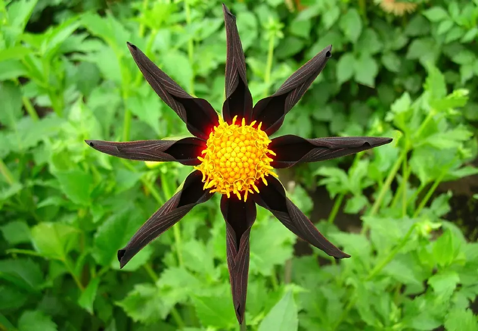 Opis: Dalija z enojnimi temno rdečimi cvetovi. Odlično nadomestilo za sorto Black Honka.