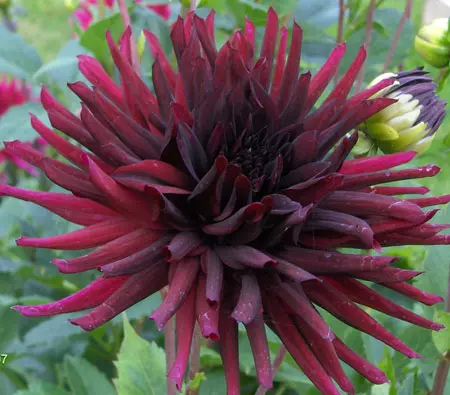 Opis: Kaktus dalija s črno-rdečimi cvetovi. Velikost cveta je 12cm.