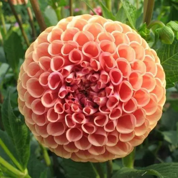 Opis: Dalija z oranžnimi kroglastimi cvetovi. Velikost cvetov je 8-9cm.