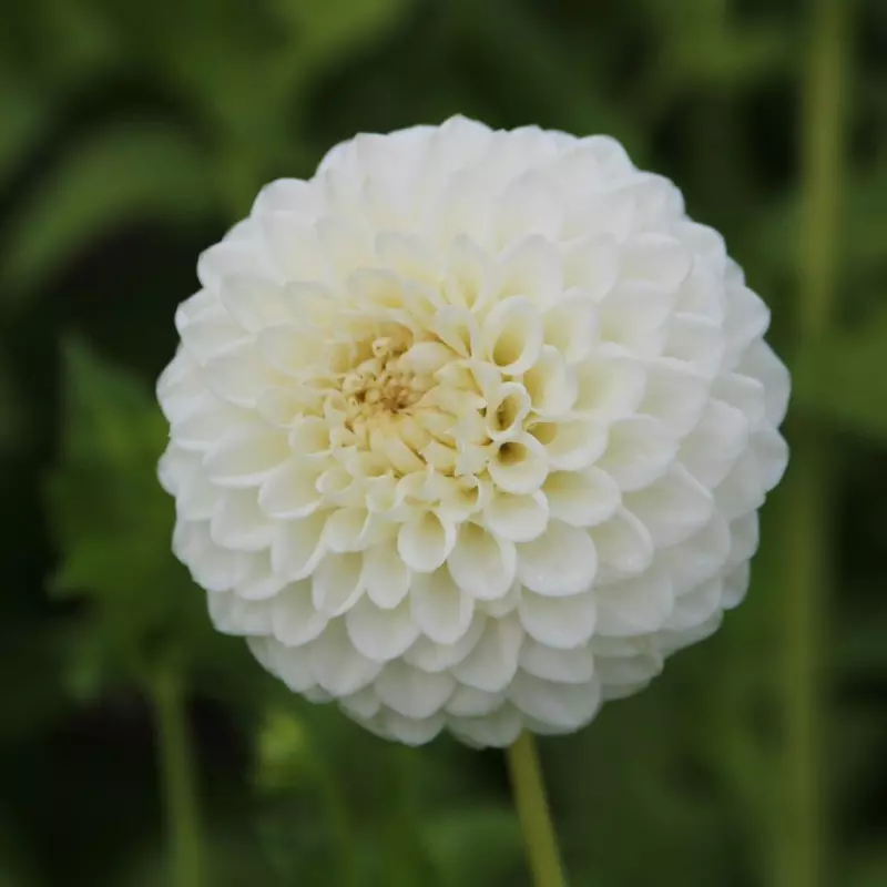 Opis: Čudovita dalije s popolnoma belimi cvetovi.