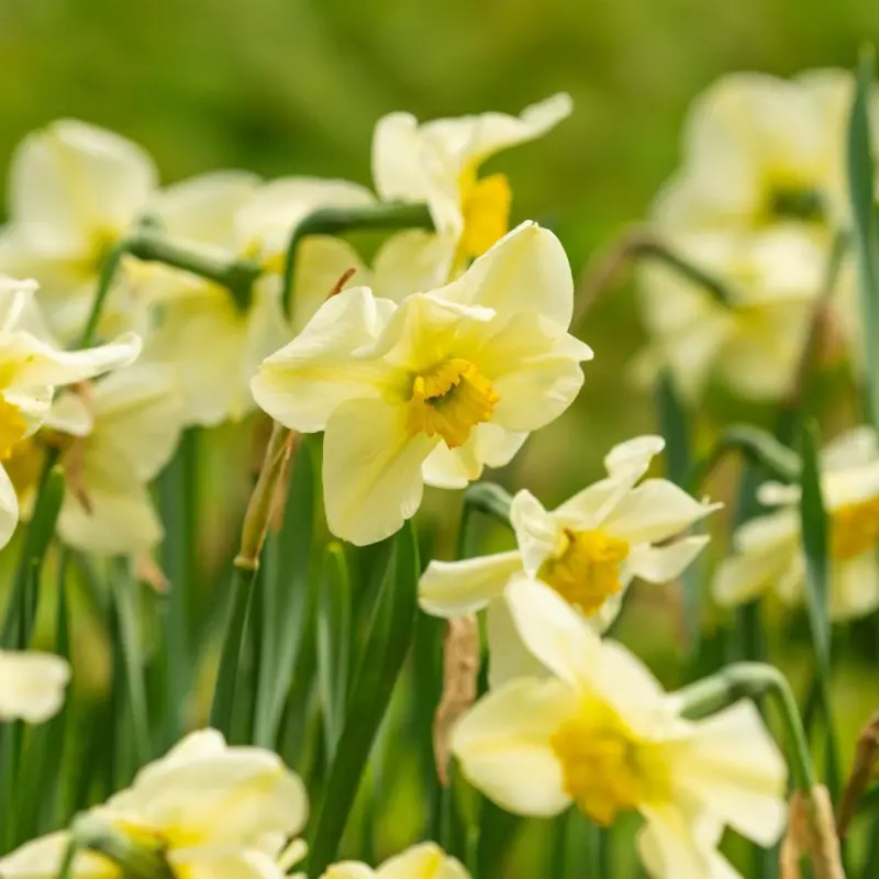Opis: Čudovita narcisa z nežno rumenimi cvetovi in zelenkasto-rumeno čašico.