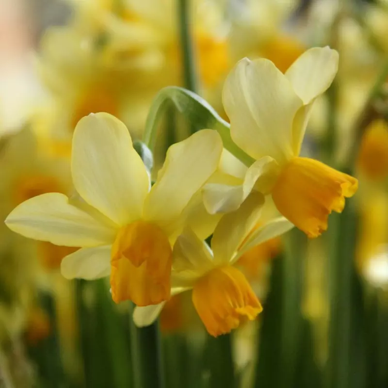 Opis: Narcisa z rumenimi cvetovi z oranžno čašico.