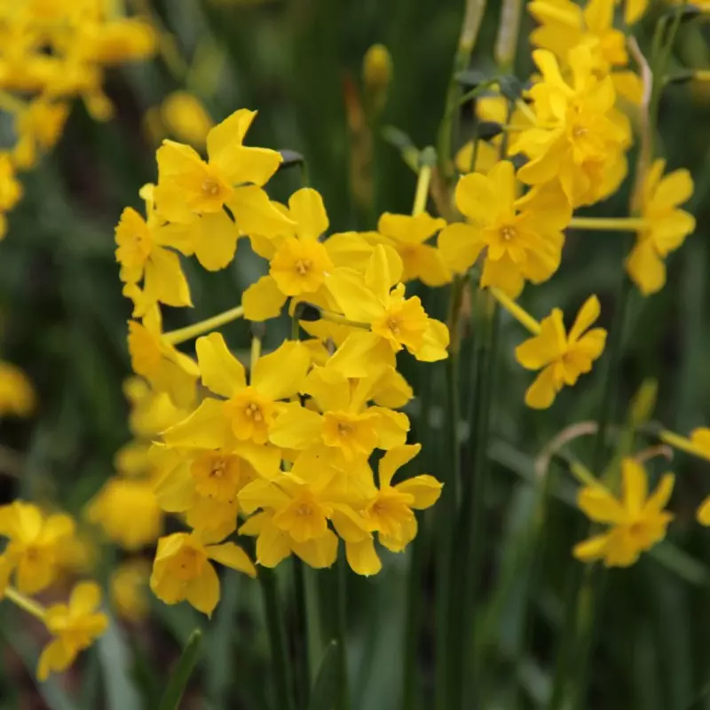 Opis: Narcisa z zlato rumenimi cvetovi. Več cvetov na steblo. Prijetno dišeča.