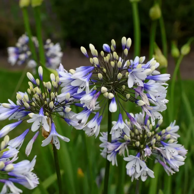 Opis: Nenavadna sorta afriške lilija z belo-modrimi cvetovi. Cvetovi se navadno pojavijo v drugem letu.