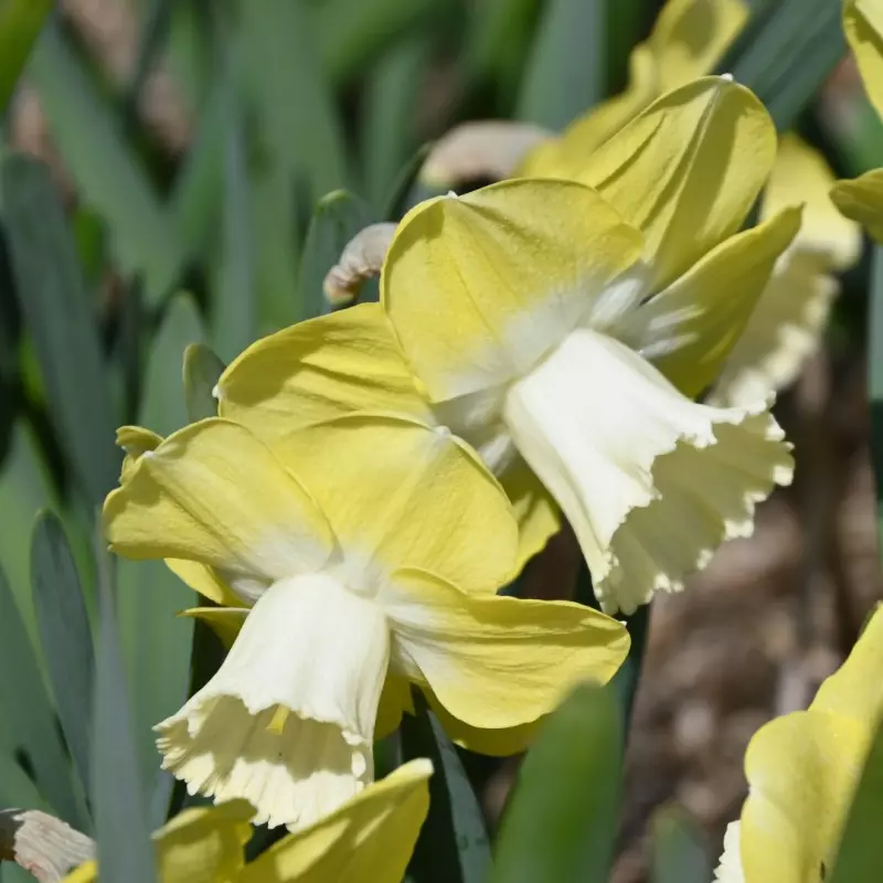 Opis: Narcisa s cvetovi v limonasto rumeni barvi in s čašo, ki med cvetenjem preide v belo.