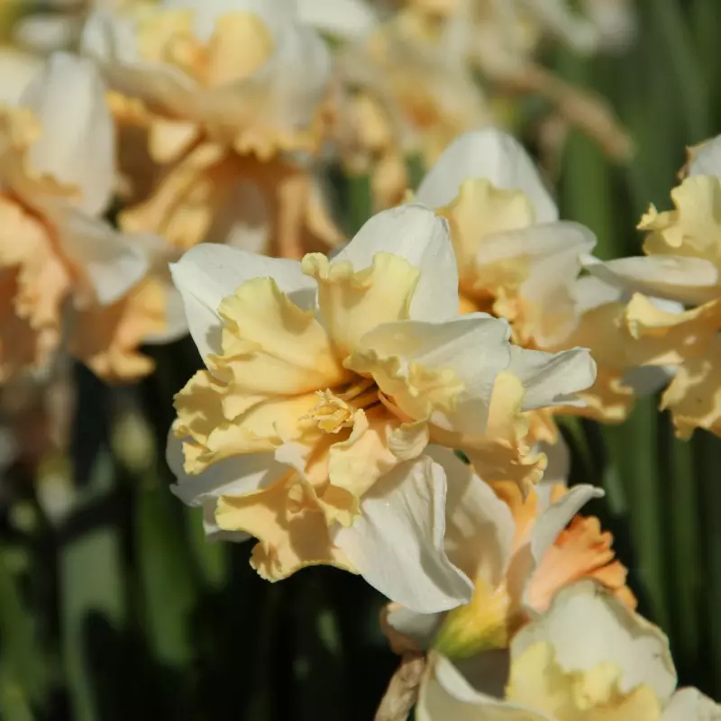 Opis: Narcisa s prekrasnimi belimi cvetovi z marelično obarvano zvezdo na sredini.