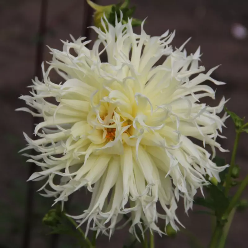 Opis: Zanimiva dalija s slonokoščeno belimi cvetovi. Cvetovi zrastejo do 16cm premera.