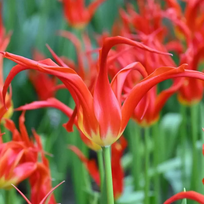 Opis: Lilijast tulipan z nenavadnimi cvetovi v rdeči barvi.