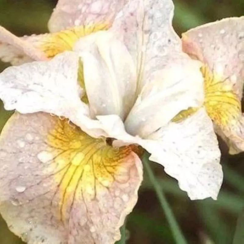 Opis: Perunika z nežnimi rožnatimi cvetovi in oranžno-rumeno ustnico.