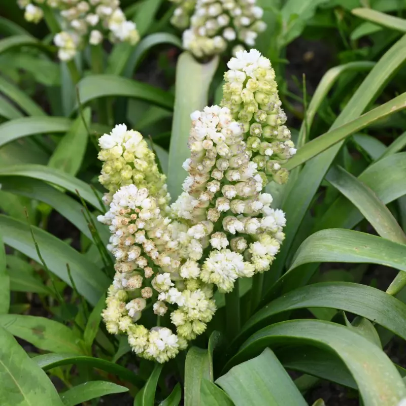 Opis: Grozdasta hijacinta s polnimi, piramidastimi grozdi dvojnih zelenkasto-belih cvetov.