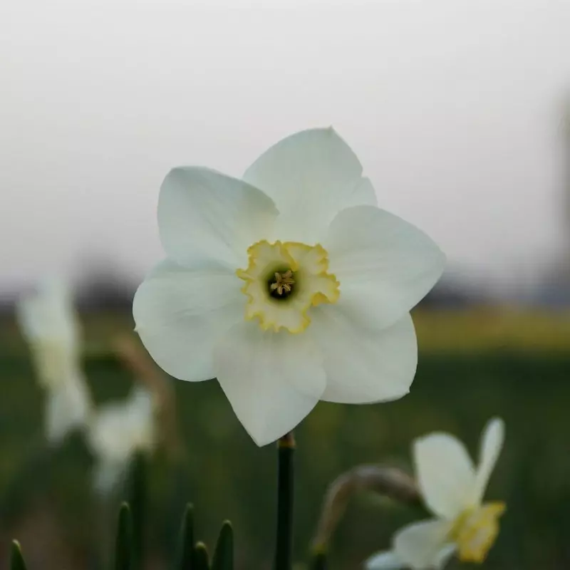 Opis: Drobnocvetna bela narcisa z zelenkastim pridihom na čudovito oblikovanih cvetnih listih. Čaša je pri dnu zelena, rob pa nežno gorčično rumen in rahlo valovit.