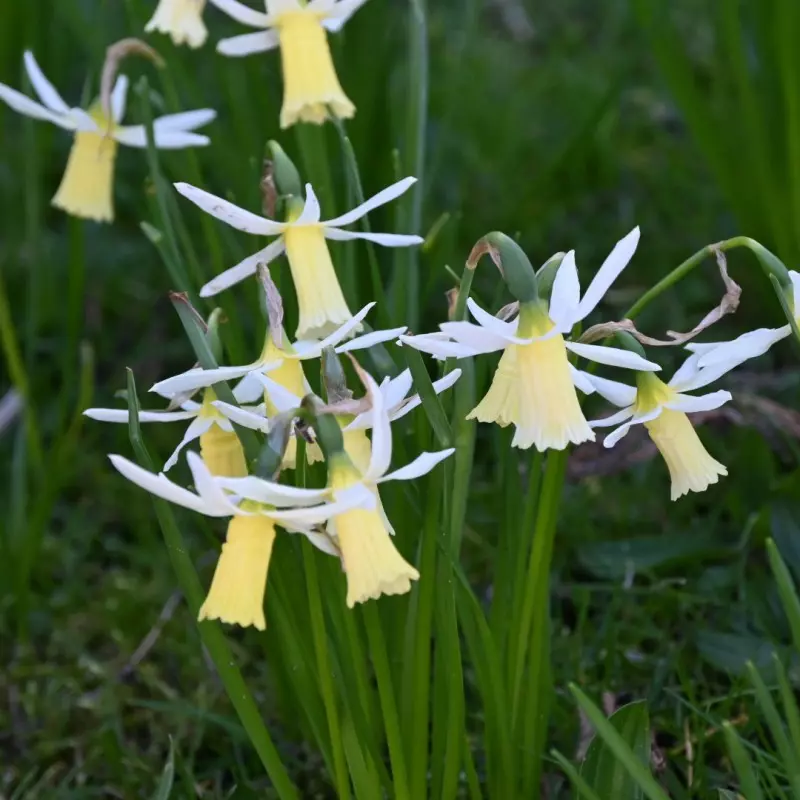 Opis: Ta čudovita narcisa ima vitke kremasto bele cvetne liste, ki se ukrivljajo nazaj in obdajajo sprva nežno rumen, kasneje pa skoraj bel trobentasti cvet.