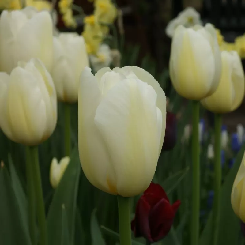Opis: Enocvetni tulipan, bel z velikimi cvetovi, dober vrtni tulipan.