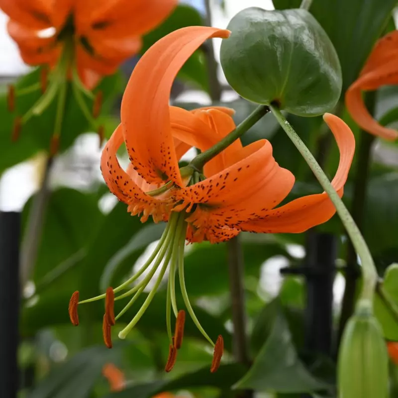 Opis: Čvrsta, visoka, oranžna lilija z rjavimi pegami. Tip turškega klobuka.