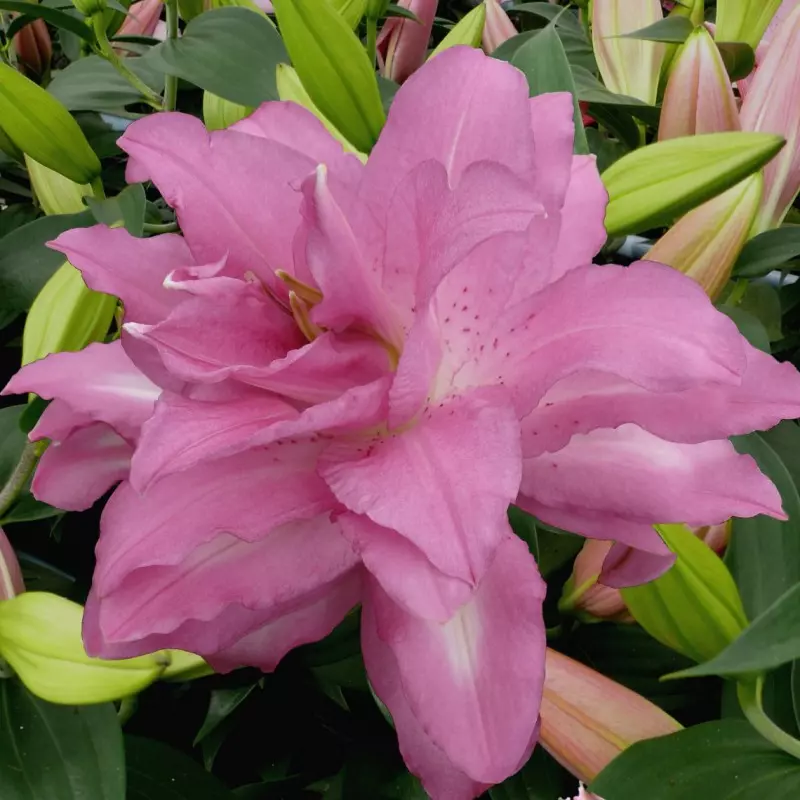 Opis: Iz serije »Lotus Lilies« je ta temno rožnata, polnjena orientalska lilija.