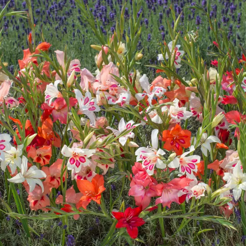 Opis: Mešanica drobnocvetnih gladiol, primernih tako za cvetlične grede kot tudi za rezano cvetje v šopkih.